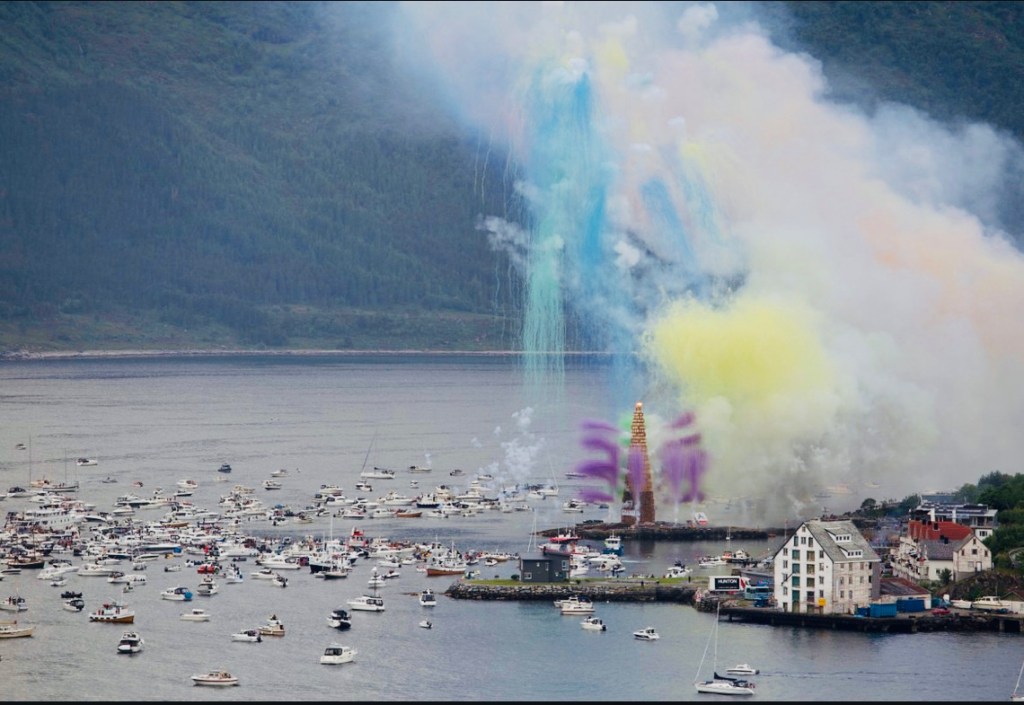 Lørdag 26. juni feiret vi St. hansaften (på Sunnmøre feirer de nærmeste lørdag), med Slinningsbålet utenfor Ålesund. En imponerende opplevelse.