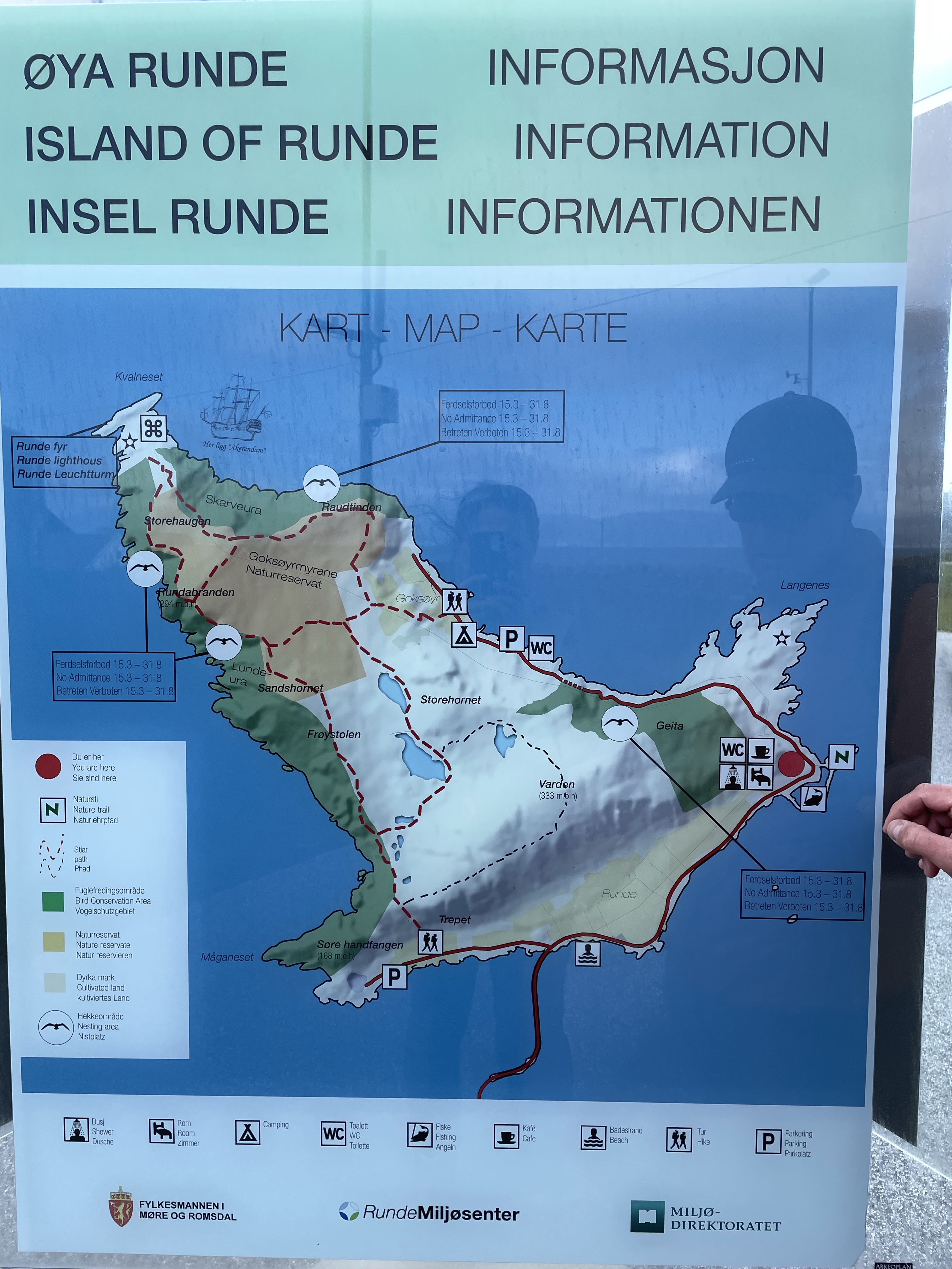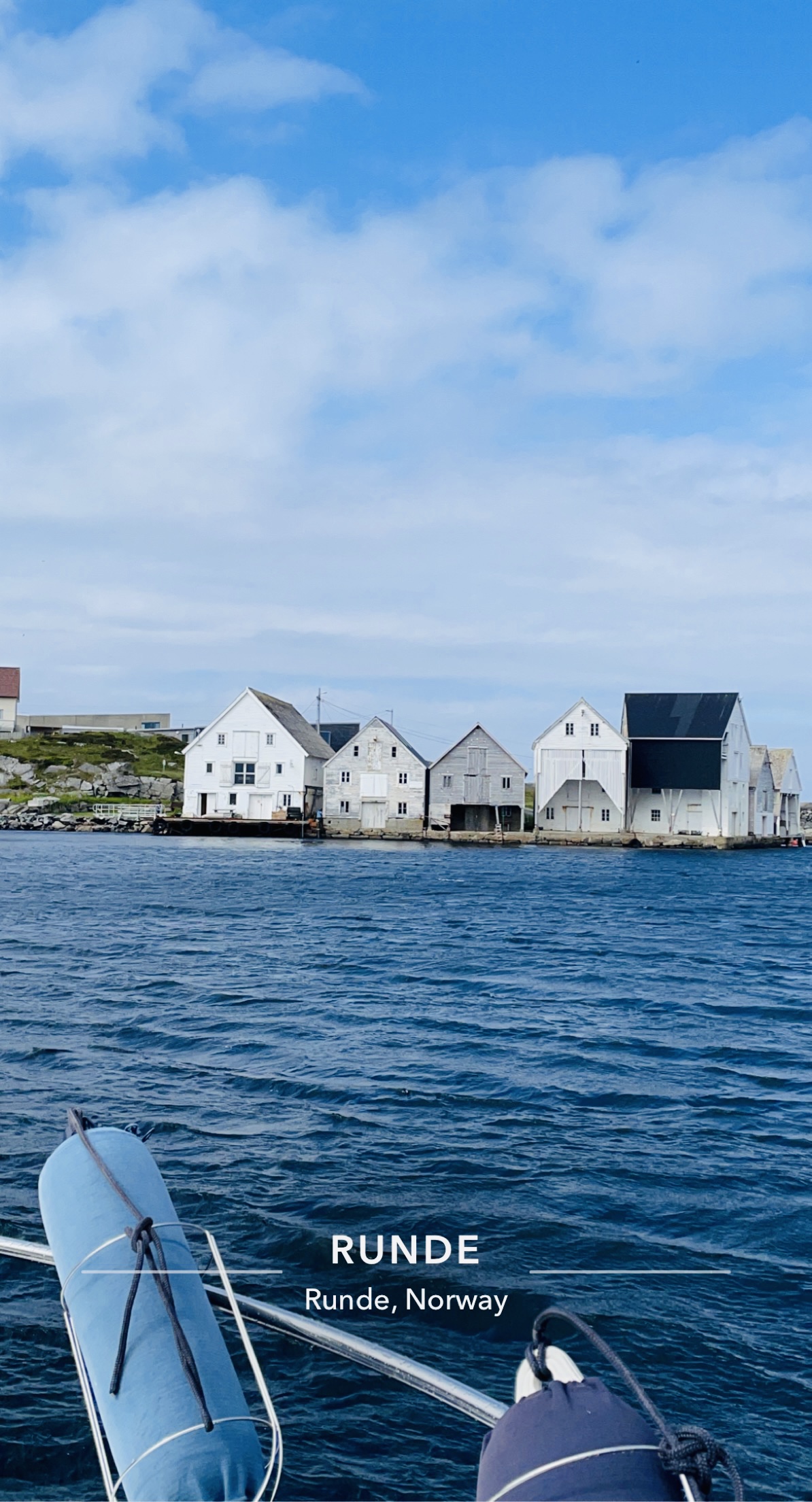 Vi (særlig Lars:-) har fulgt værvarslene, og spesielt varslene for vind, tett de siste dagene. Med opp mot 15-18 meter pr sekund målt utenfor Stadt, ble første etappe ganske kort (men likevel ganske ruskete med 1 meter bølgehøyde…). Vel inne i havna på Runde kunne vi slappe av resten av kvelden. Og ikke minst se oss rundt på den spennende øya.