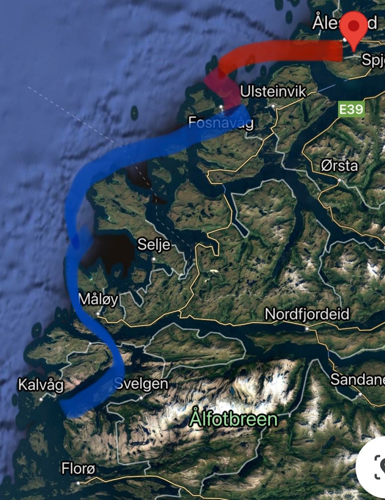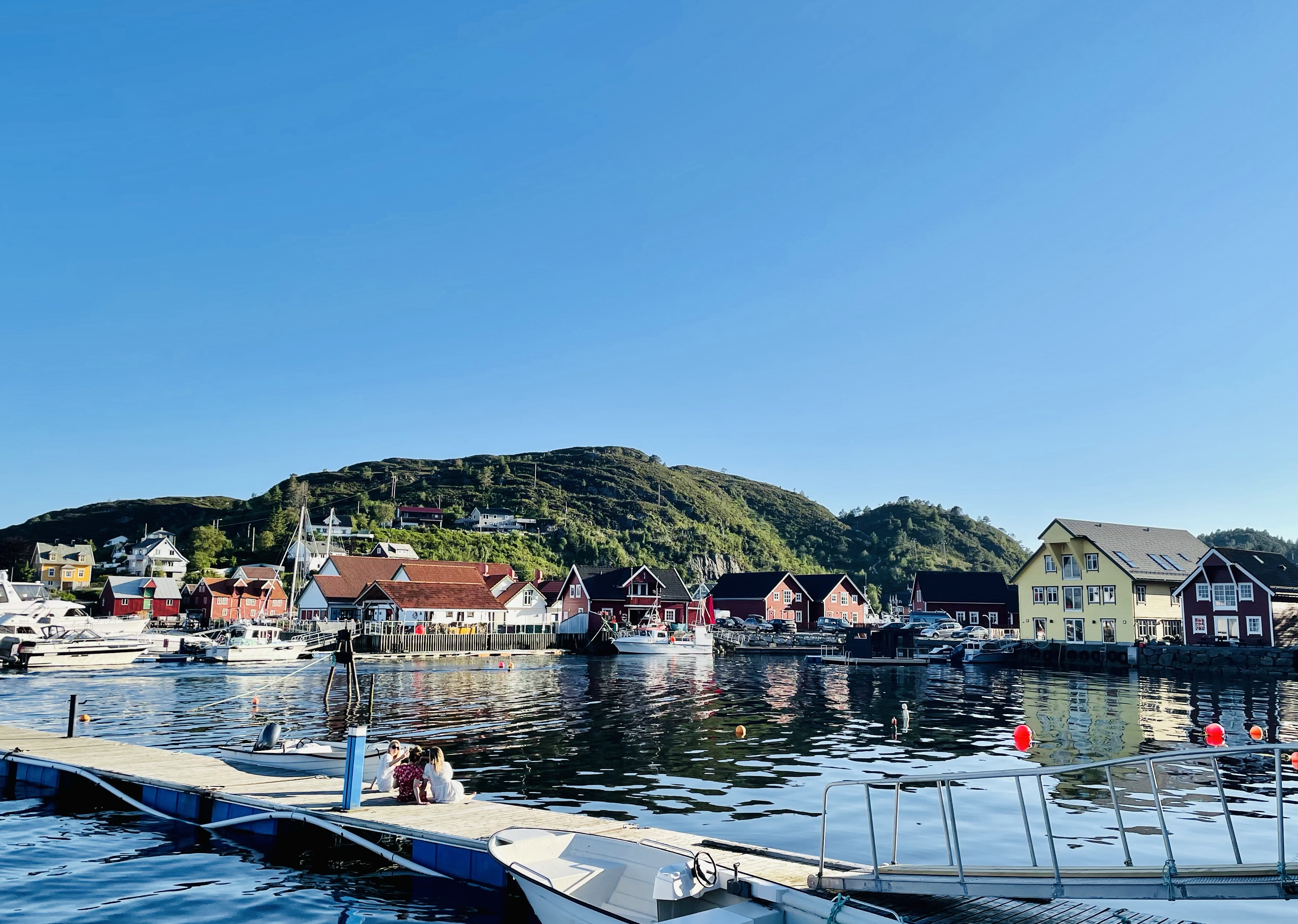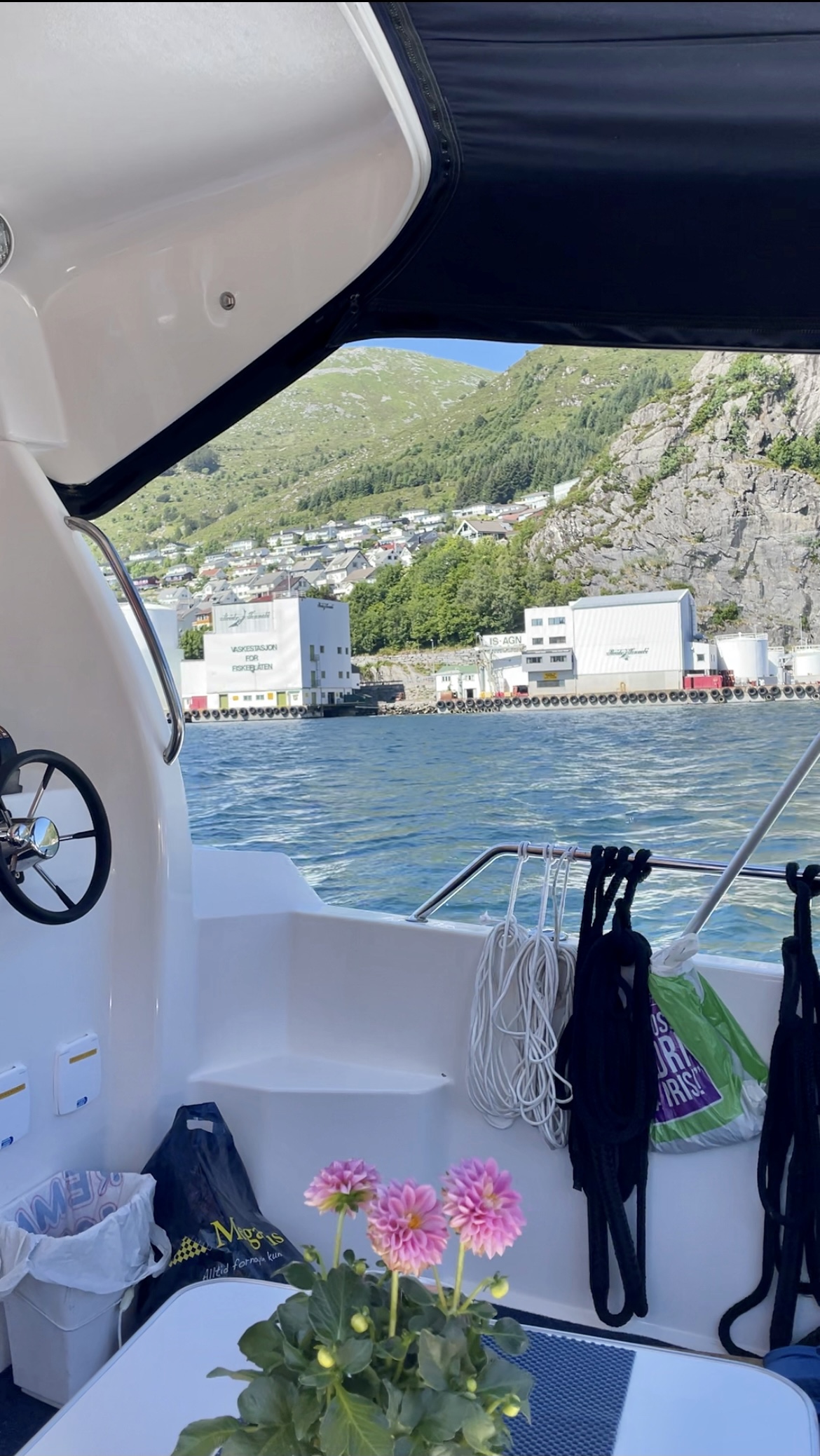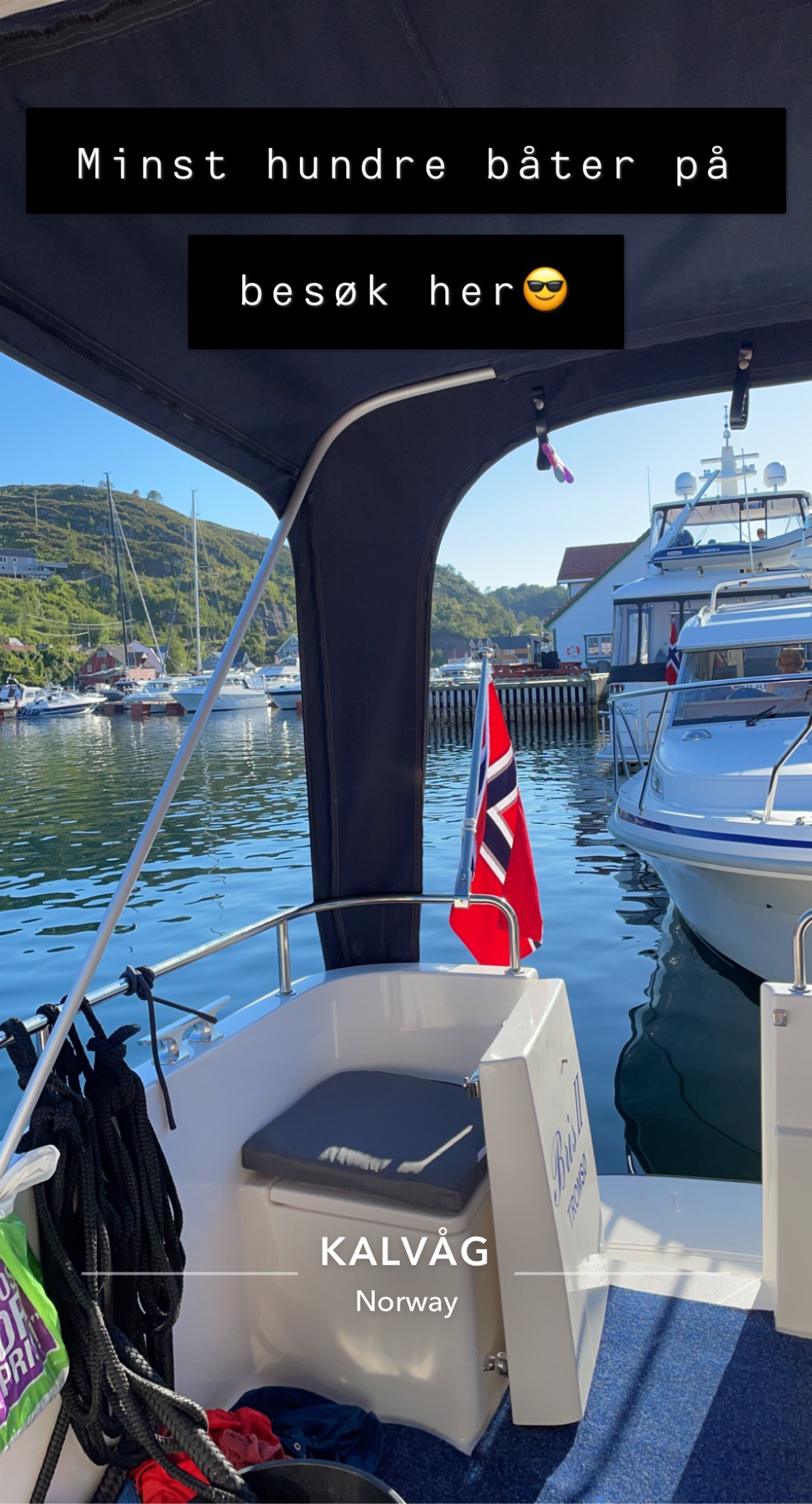 Neste stopp (hvor vi overnatter) er Kalvåg (på Frøya). Her var det utrolig fullt i båthavna, men vi fant likevel en fin plass med sol. Varmt i dag, over 20 grader i kveld… Ble bare en liten gåtur rundt i det lille tettstedet, før kveld i båten.