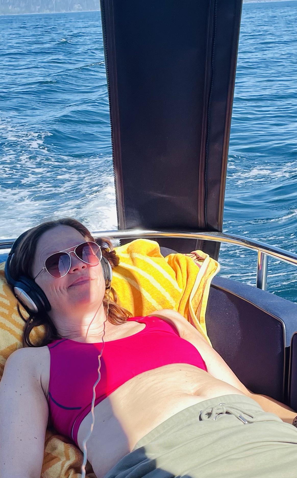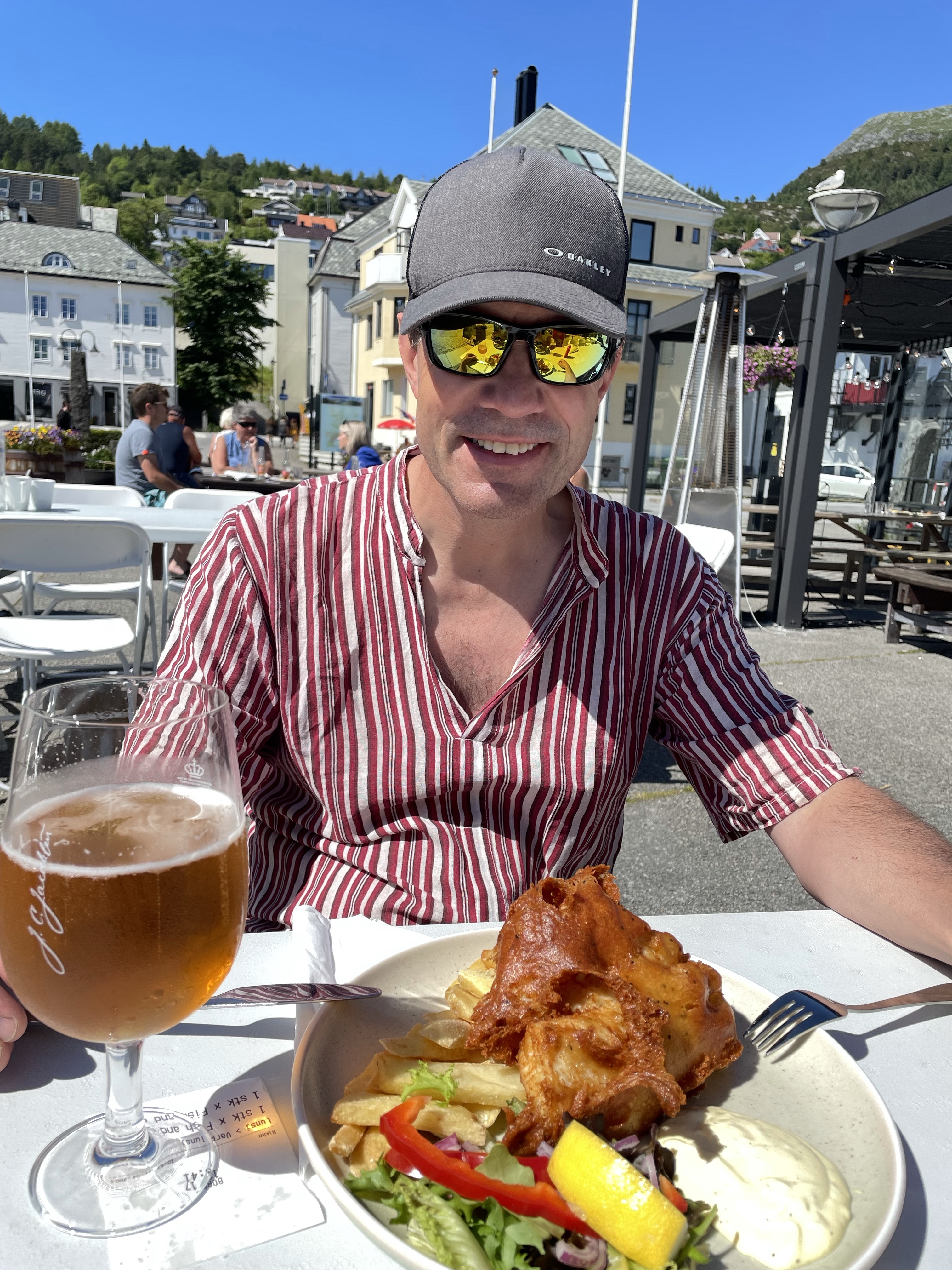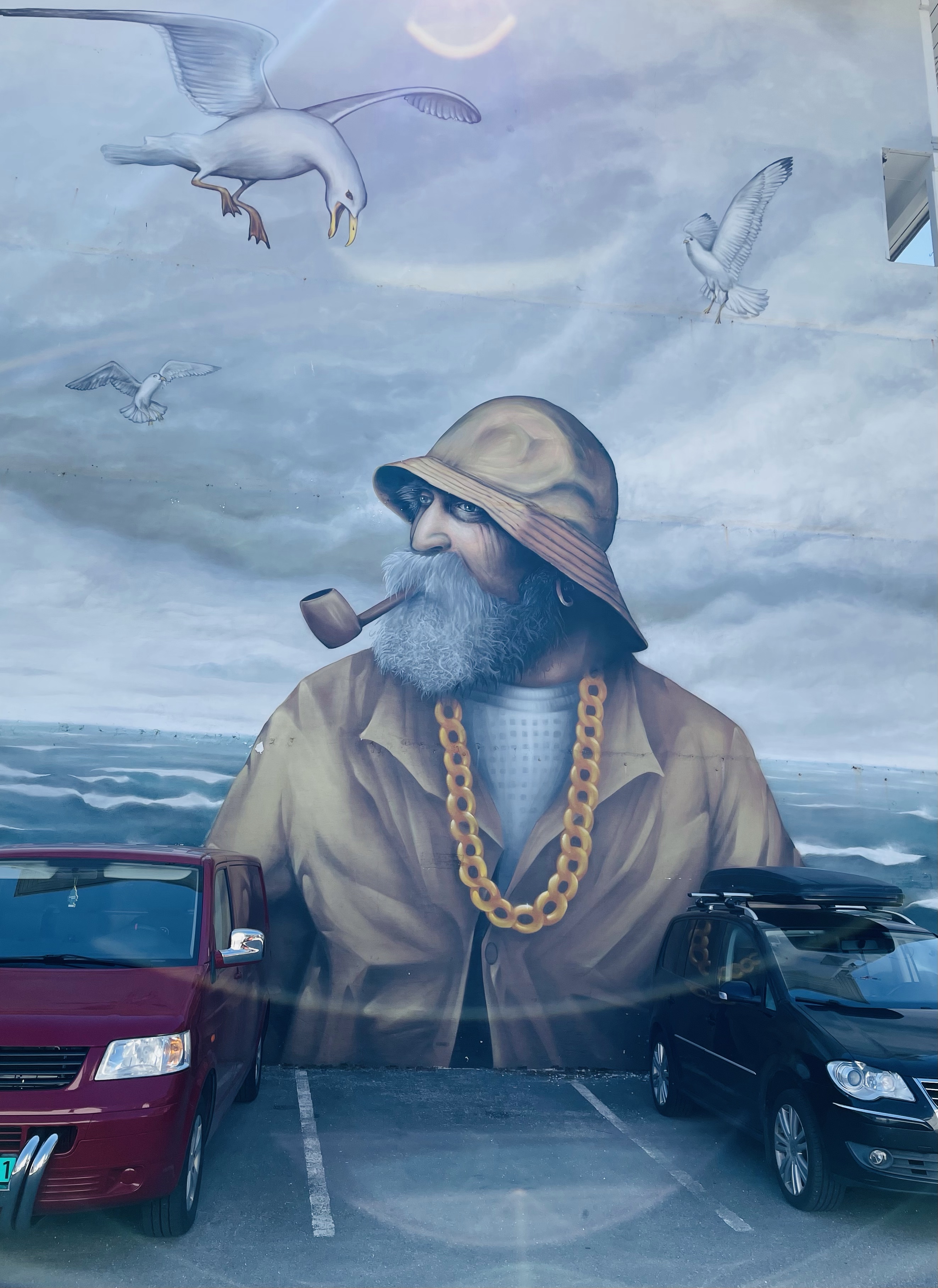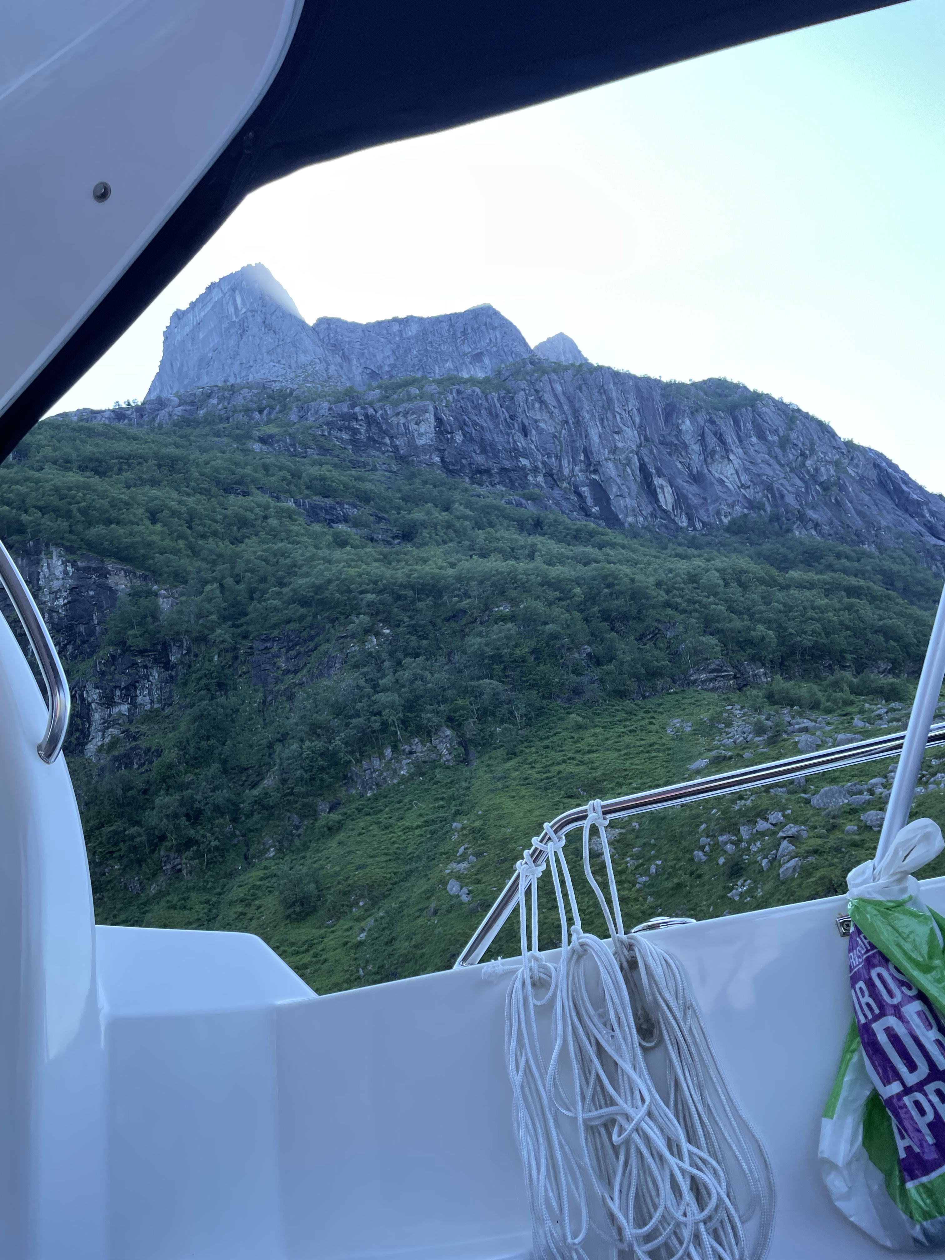 Neste stopp (hvor vi overnatter) er Kalvåg (på Frøya). Her var det utrolig fullt i båthavna, men vi fant likevel en fin plass med sol. Varmt i dag, over 20 grader i kveld… Ble bare en liten gåtur rundt i det lille tettstedet, før kveld i båten.