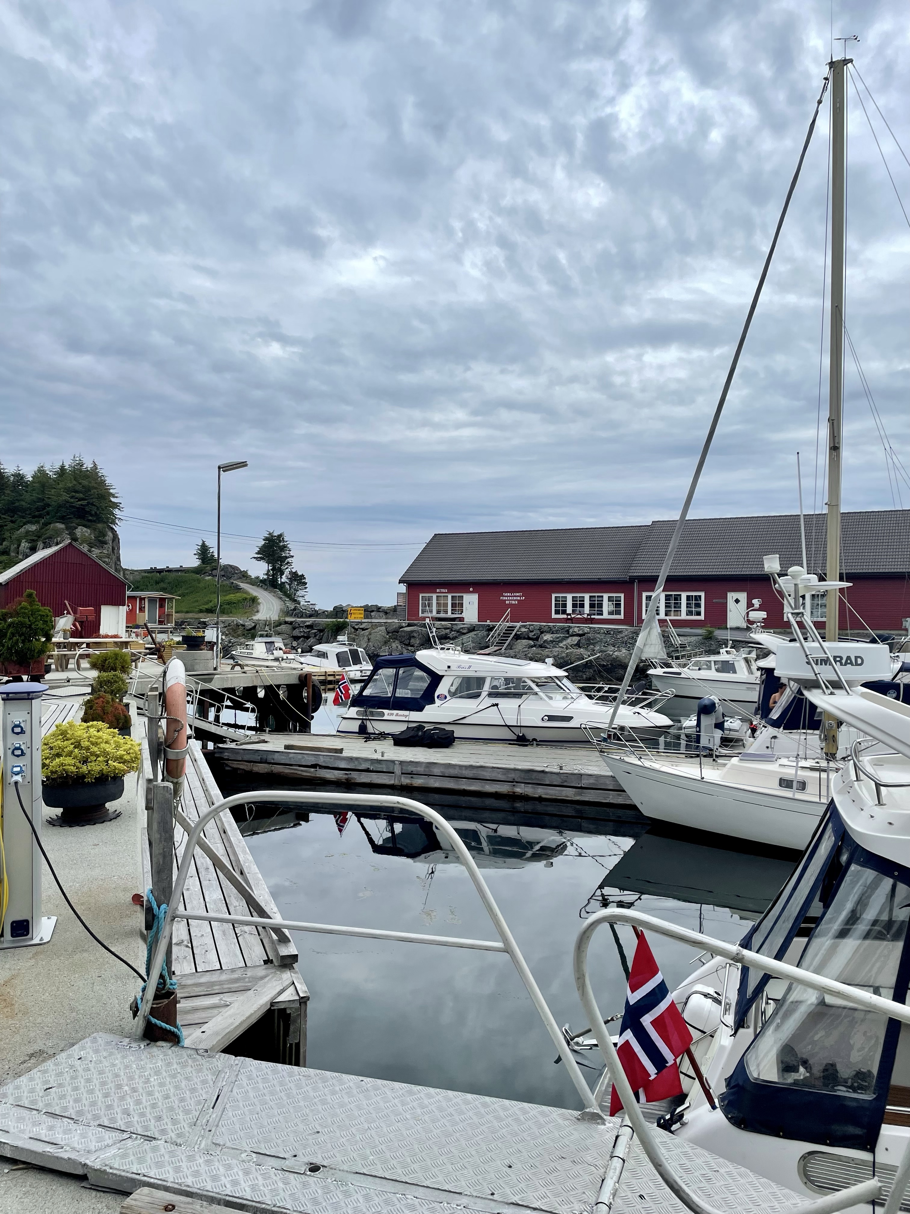 Etter å ha prøvd fiskelykken (uten hell) la vi til kai ved gjestebrygga i Litlebergen ca kl 19 (ikke langt fra Bergen😁). Og nå har vi nettopp spist hjortekjøtt fra Sula med nypoteter. Det smakte aldeles fortreffelig 👍 Her er det veldig stille og rolig. Men det passer bra, vi trenger å hvile🥰