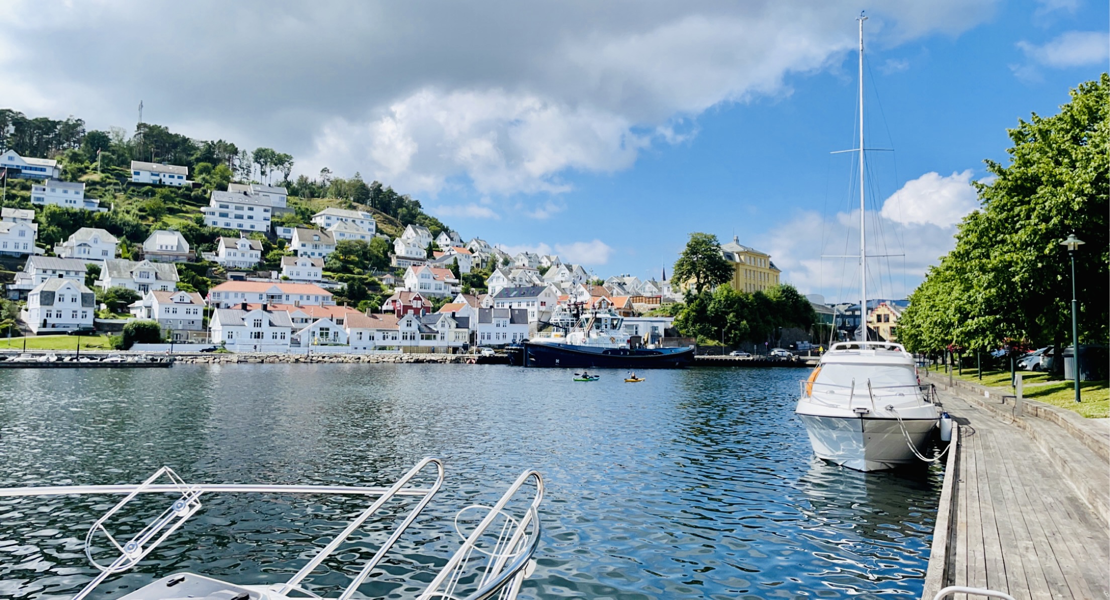 Båthavna/gjestehavna er forresten veldig bra her. Alle fasiliteter 5 meter unna båten! Vi står longside ved brygga rett foran Coop Extra👍