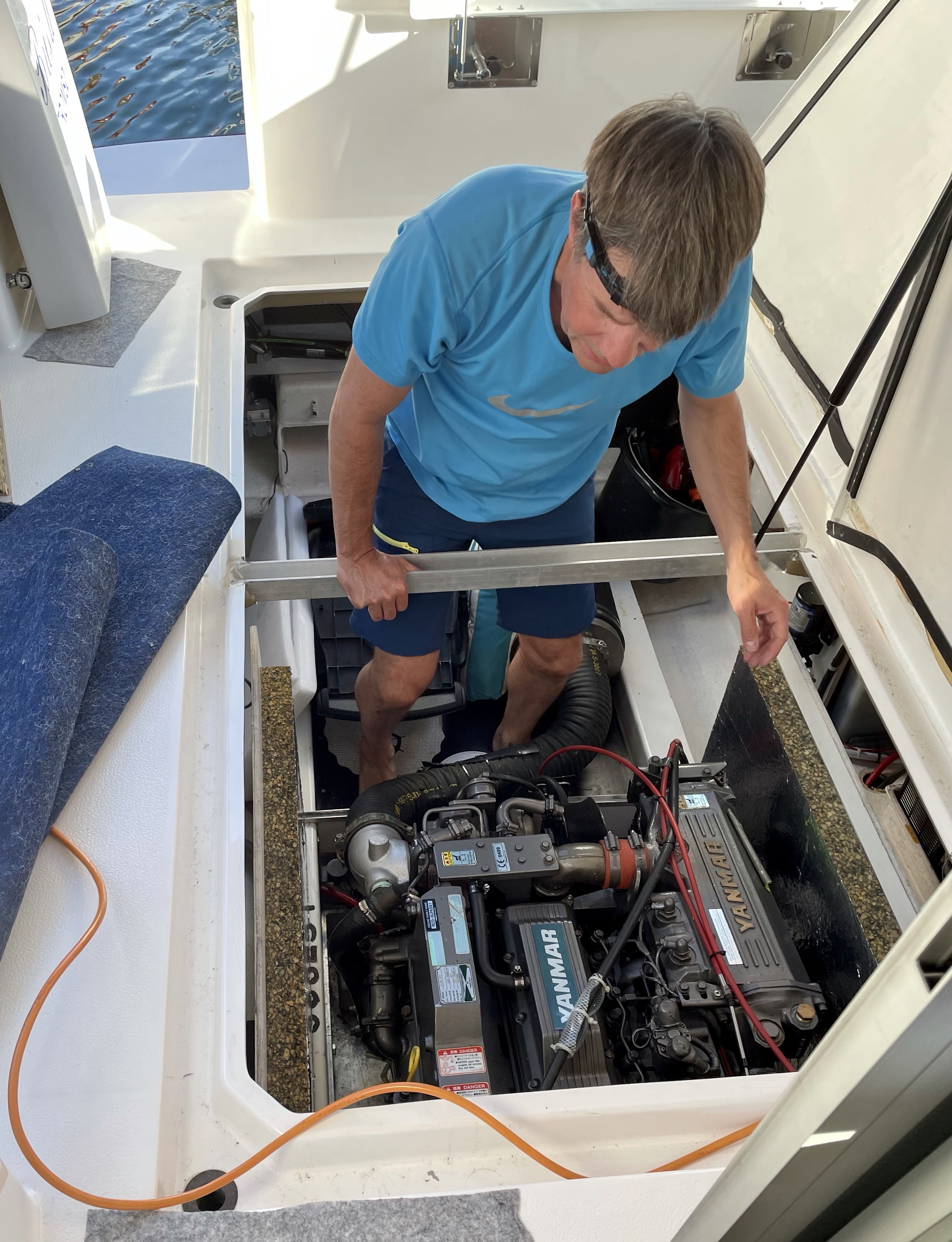 Men plutselig måtte Lars dukke ned i motoren… en konstant pipelyd gav bekymring. Mest sannsynlig en vannalarm (uten at det var mulig å finne verken vann eller annen forklaring …)