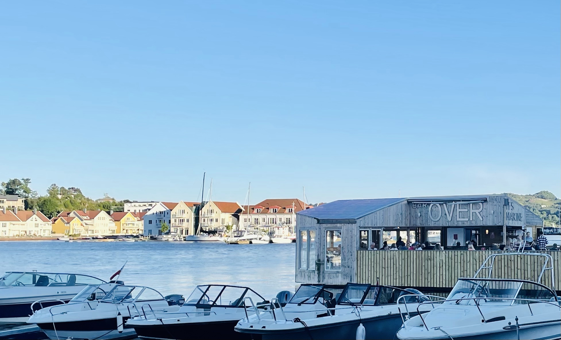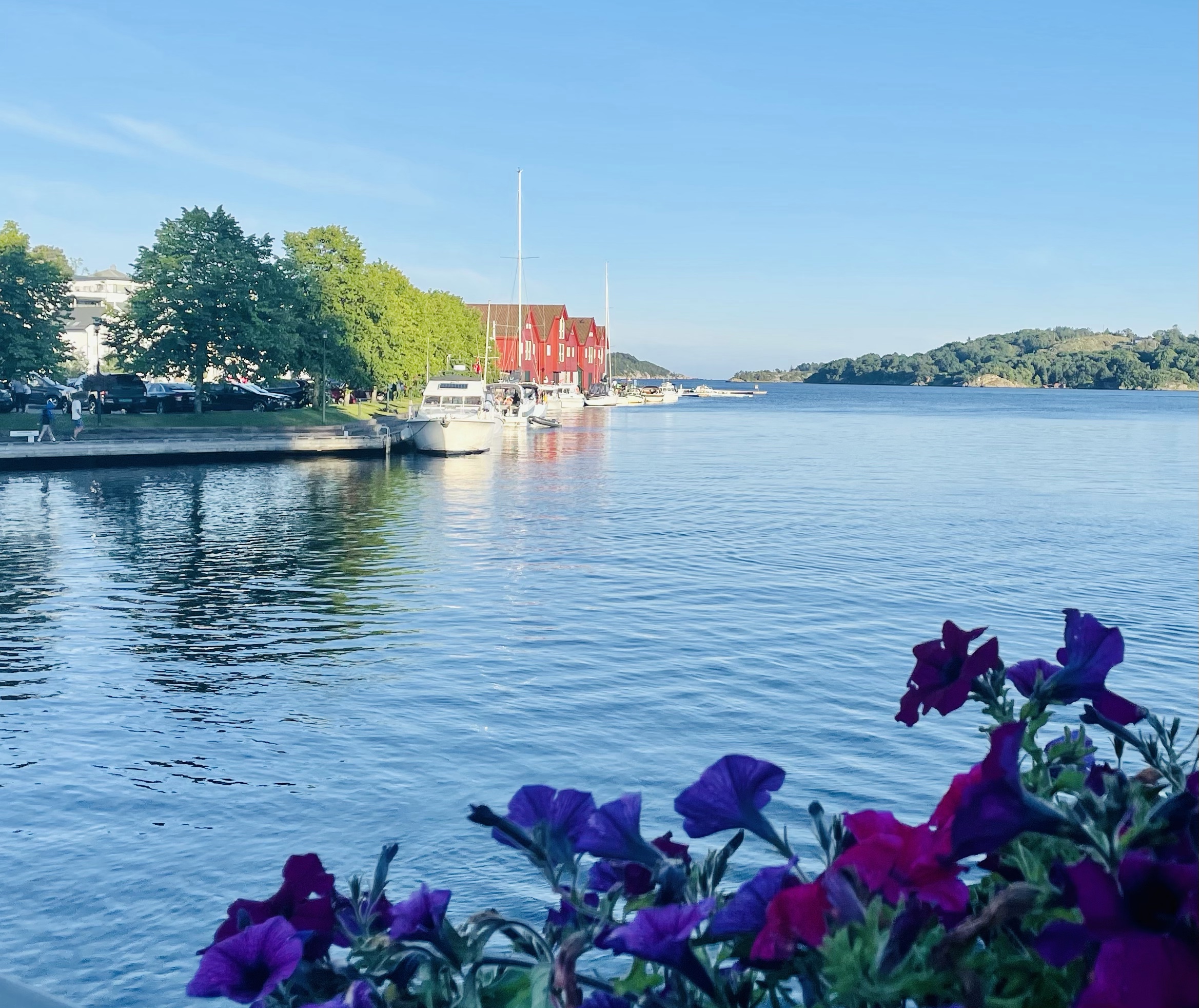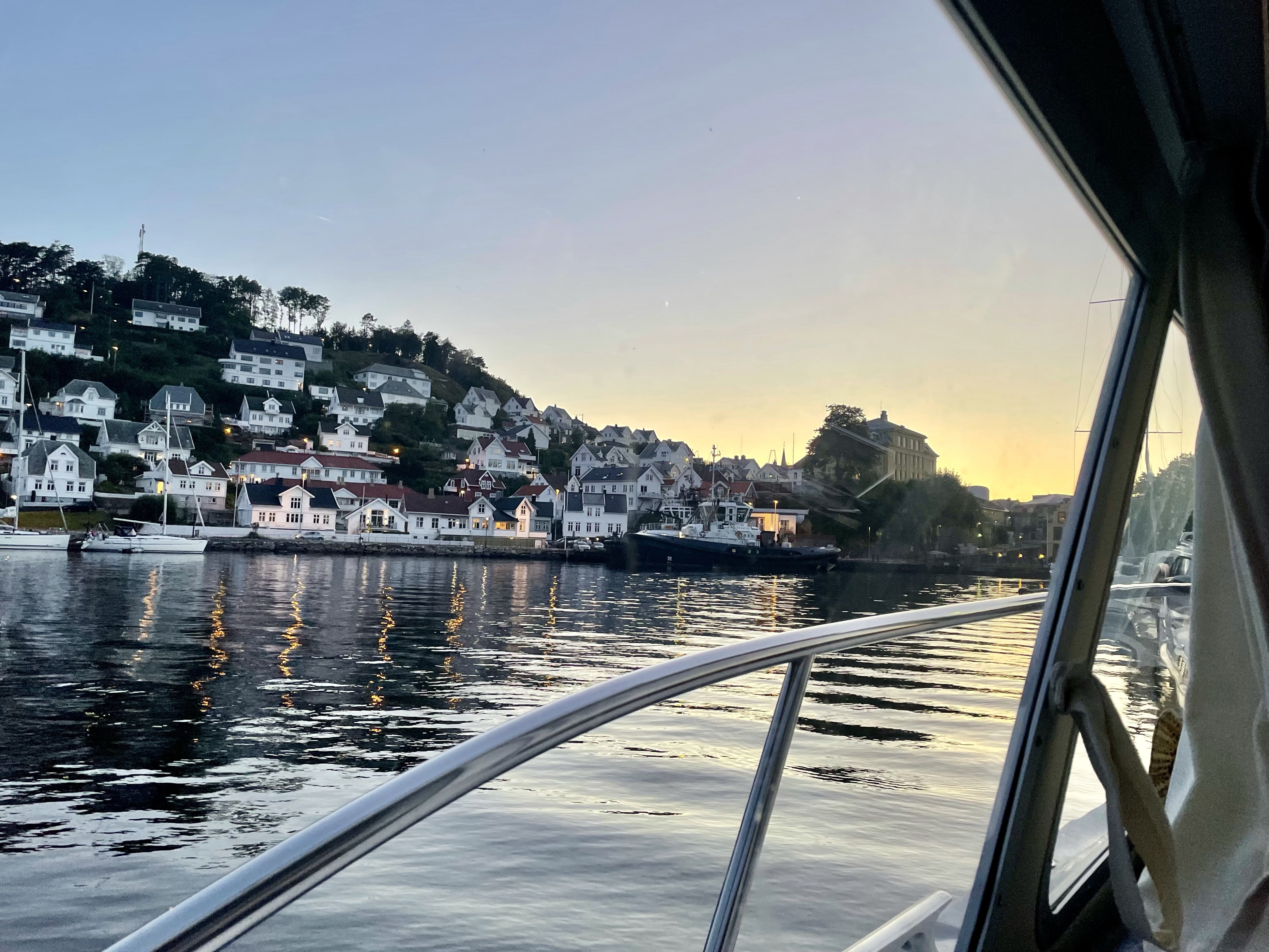 Etter rolige timer i båthavna med middag, dusjing, avslapning, soling, roting i motoren etc… brukte vi kvelden til å rusle rundt i vakre Farsund. Her er det virkelig mye aktivitet, både på havet og på land. Gøy å se lokale folk legge til i full fart for en tur innom matbutikken. Her er det båt heller enn bil som gjelder.
