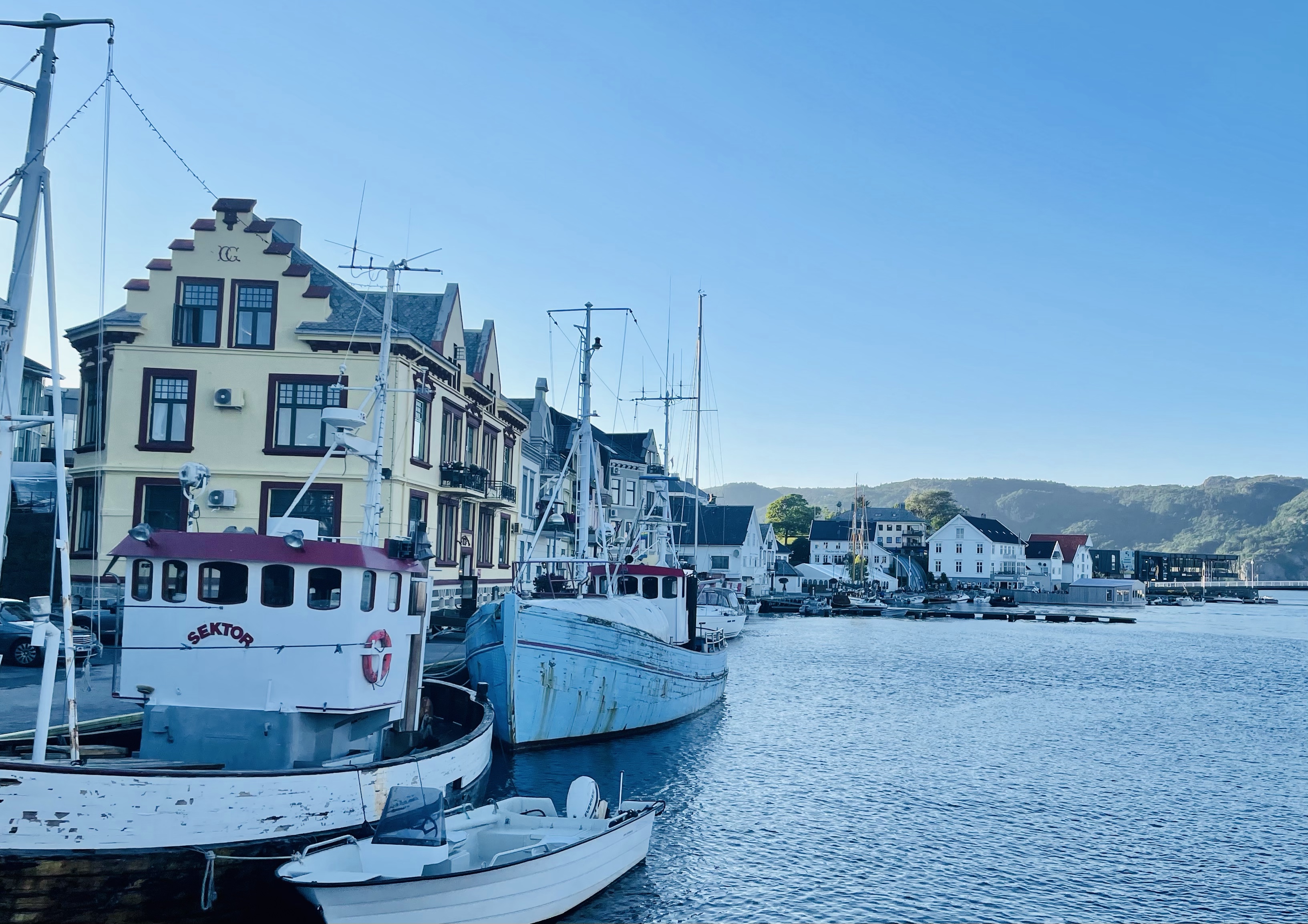 Etter ca. 7 tiner gange i båten (med mye uro tross lite vind, vi gikk tross alt med Nordsjøen utenfor oss), kom vi frem til Farsund litt før kl 14. Planene om å besøke Egersund hoppet vi over, her er det om å gjøre å komme trygt i havn😁