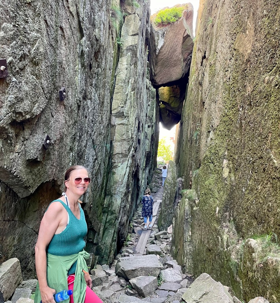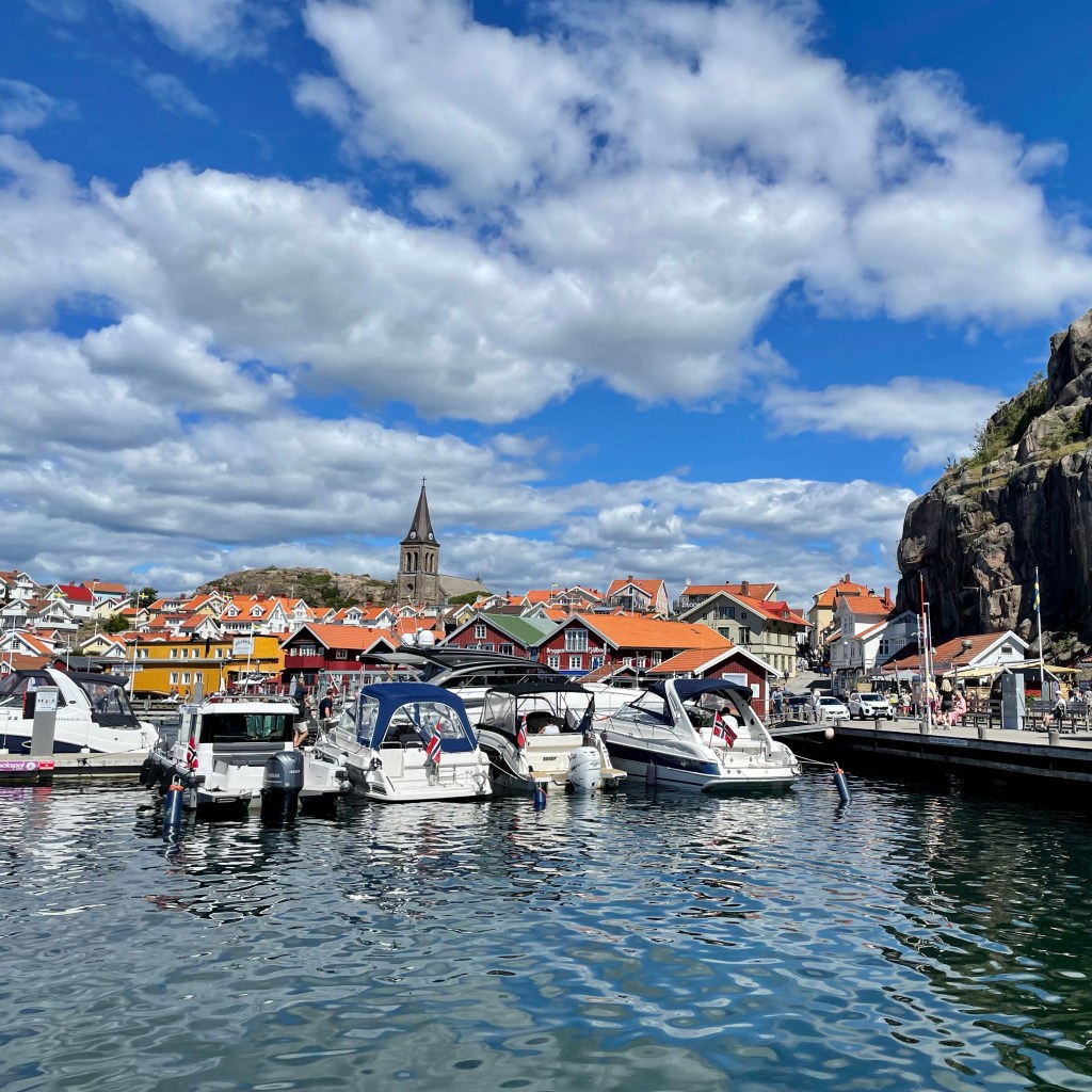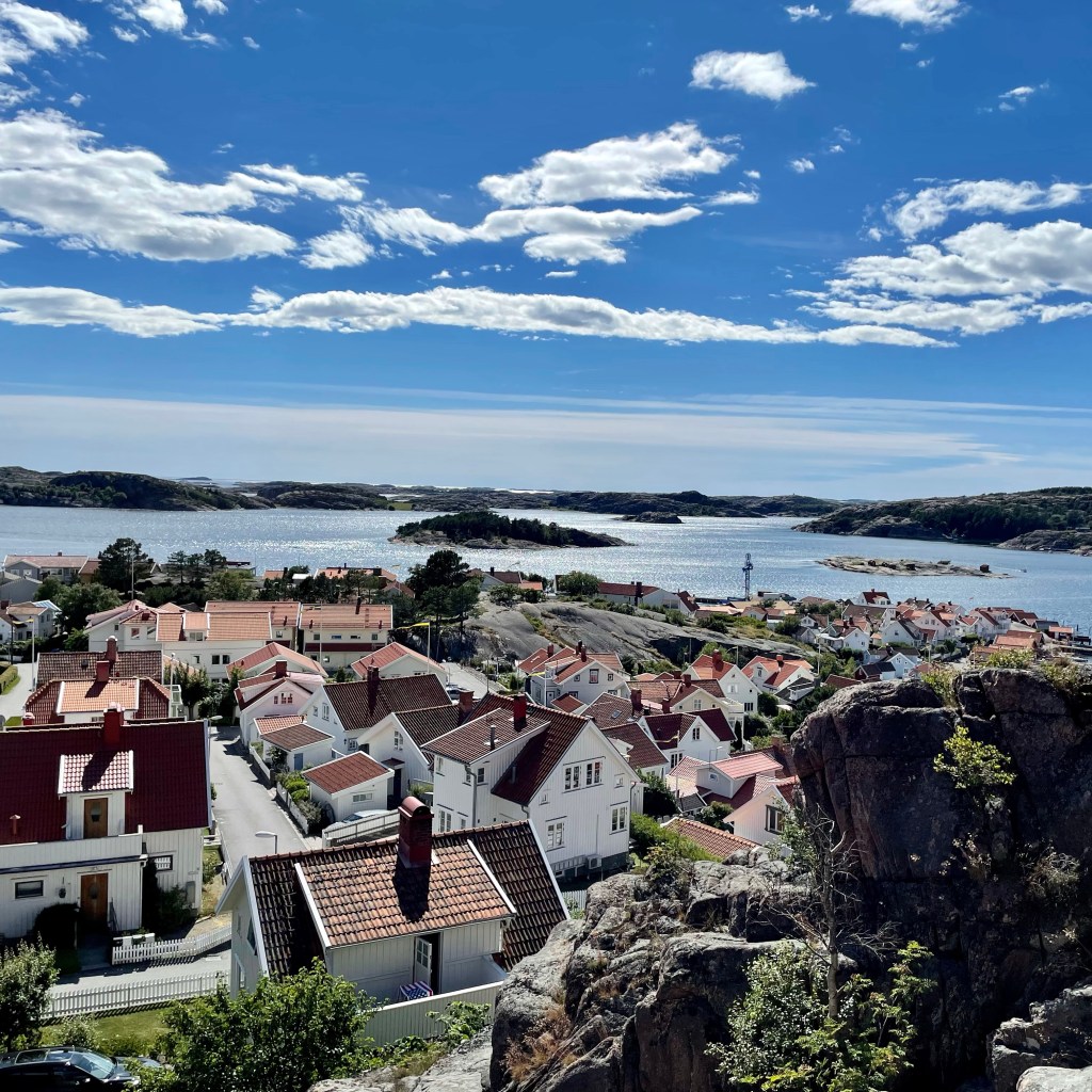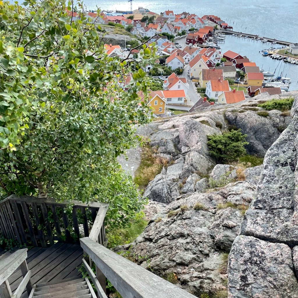 Det lille fiskeværet Fjällbacka er oppkalt etter det store berget midt i byen og er godt kjent som Kungsklyftan i Ronja Røverdatter og ikke minst fra alle bøkene til Camilla Läckberg. Det var spennende å ta seg gjennom Kungsklyftan og helt opp på fjellet gikk det solide trapper.